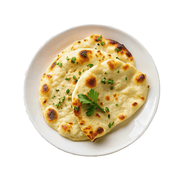 A soft, fluffy naan made with Sher Atta, yogurt, and ghee, available plain or filled with garlic or herbed potatoes.