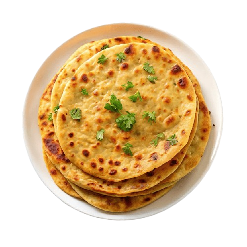 A rich, layered flatbread made with Sher Atta, canola oil, and ghee, filled with savory options like potatoes, cauliflower, or radish.